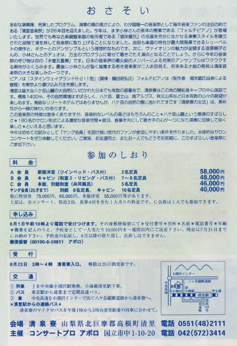 お問い合わせ‥‥コンサートプロ アポロ(TEL:042-572-3414)